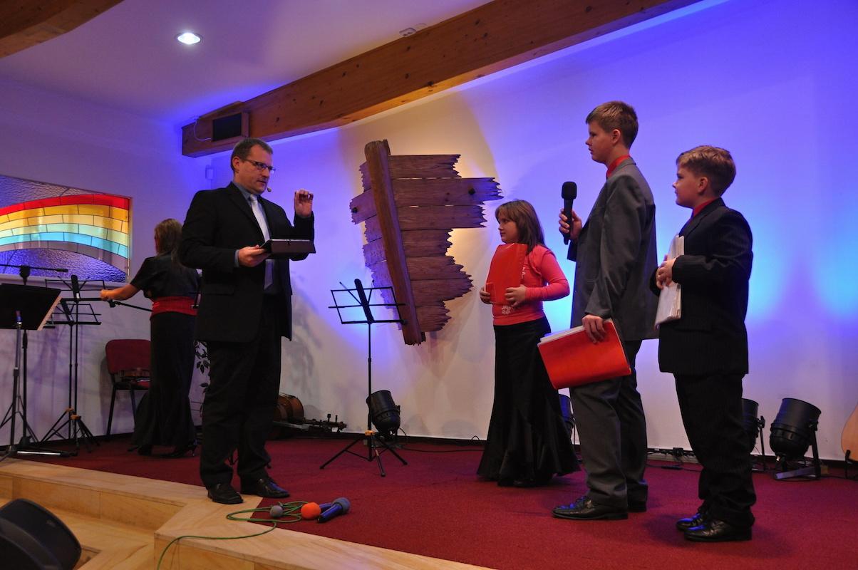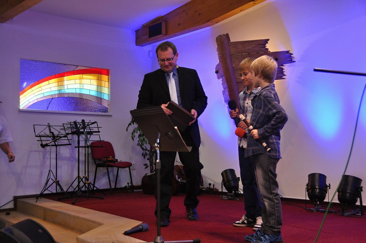Sbor v Českém Těšíně poskytl své zázemí pro dětskou bohoslužbu, která je tak trochu umělecká. Zpěv, hudba, recitace i vernisáž obrázků a plastik. To vše obohatilo sobotní program, který se nesl na vlnách velkého deště. Ale déšť byl pouze z úst Lukáše Jurečka, když vyprávěl příběh o Noem. Výkony dětských zpěváků a hudebníků totiž roztrhly zamračené nebe a tak mezi nás nakouklo i sluníčko.