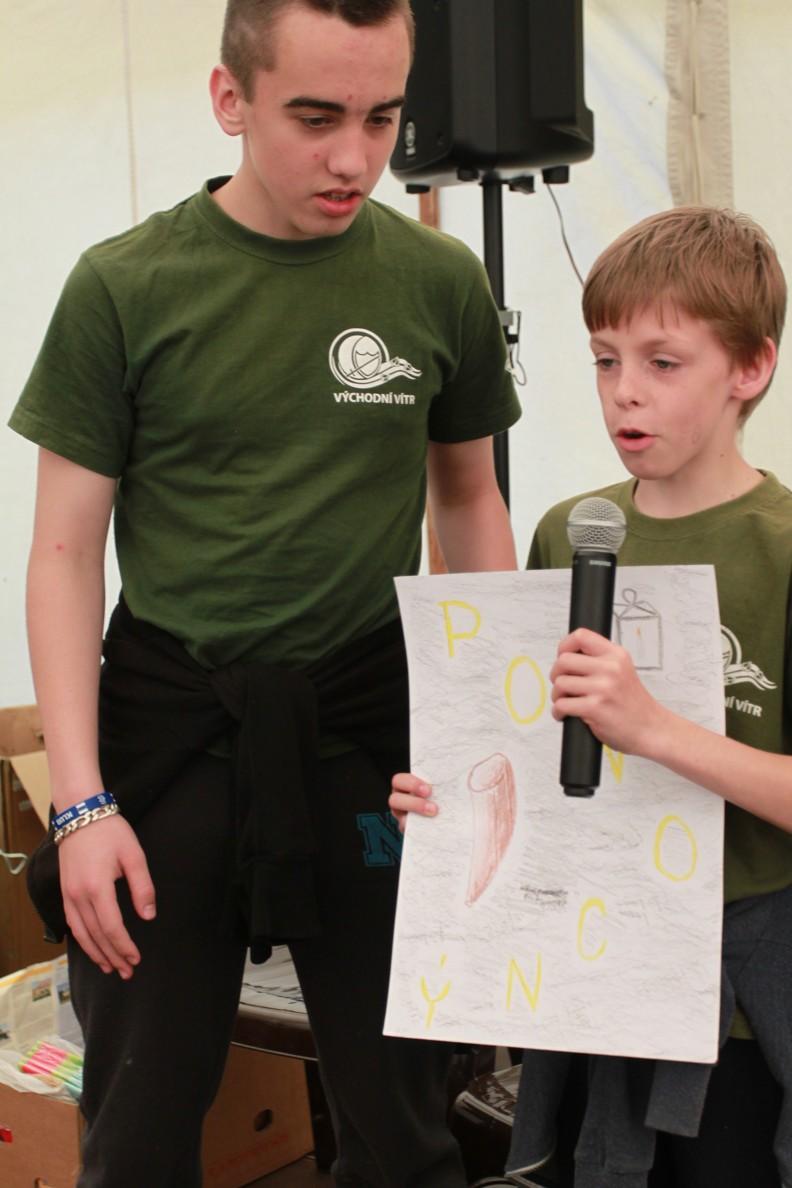 O bitvě, ale duchovní, mezi dobrem a zlem, a o úctě ke starším, zkušenějším lidem a jejich napomínání, se děti zamýšlely na bohoslužbách se slovem, písničkami a modlitbami ve velikém společném stanu.