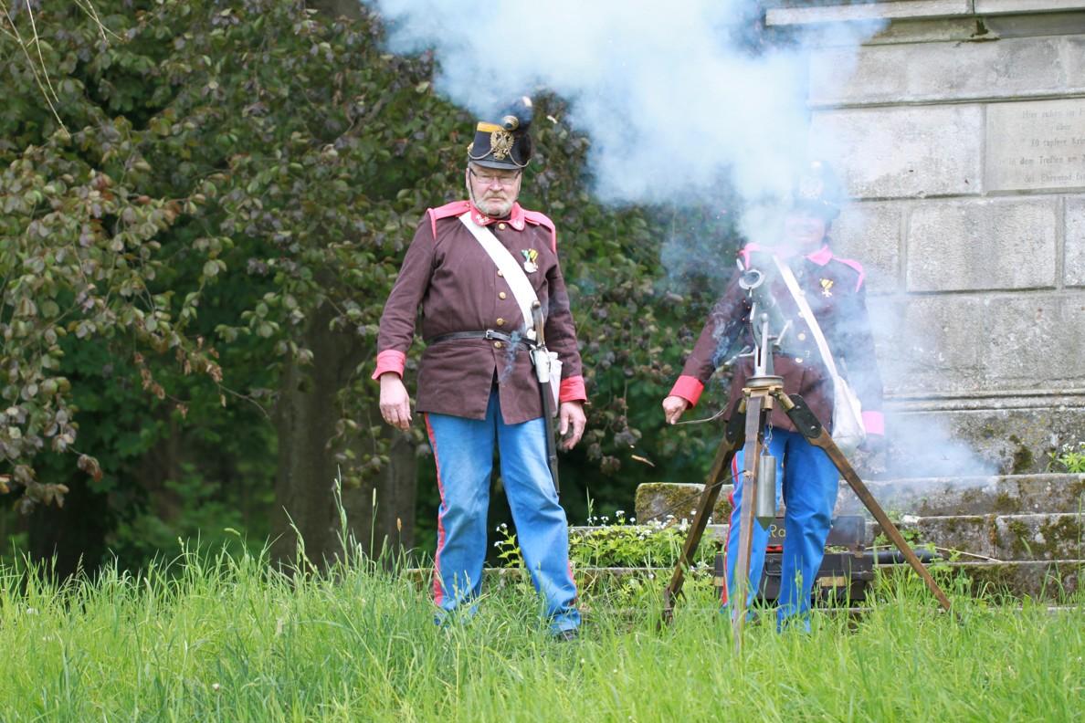 Cestou na zámek potkaly děti v lese vojáky v císařských uniformách, kteří pro ně připravili povídání o nejhorší bitvě prusko – rakouské války v roce 1866 právě zde u České Skalice společně s ukázkou tehdejších zbraní včetně střelby z pušek předovek a starobylého raketometu.