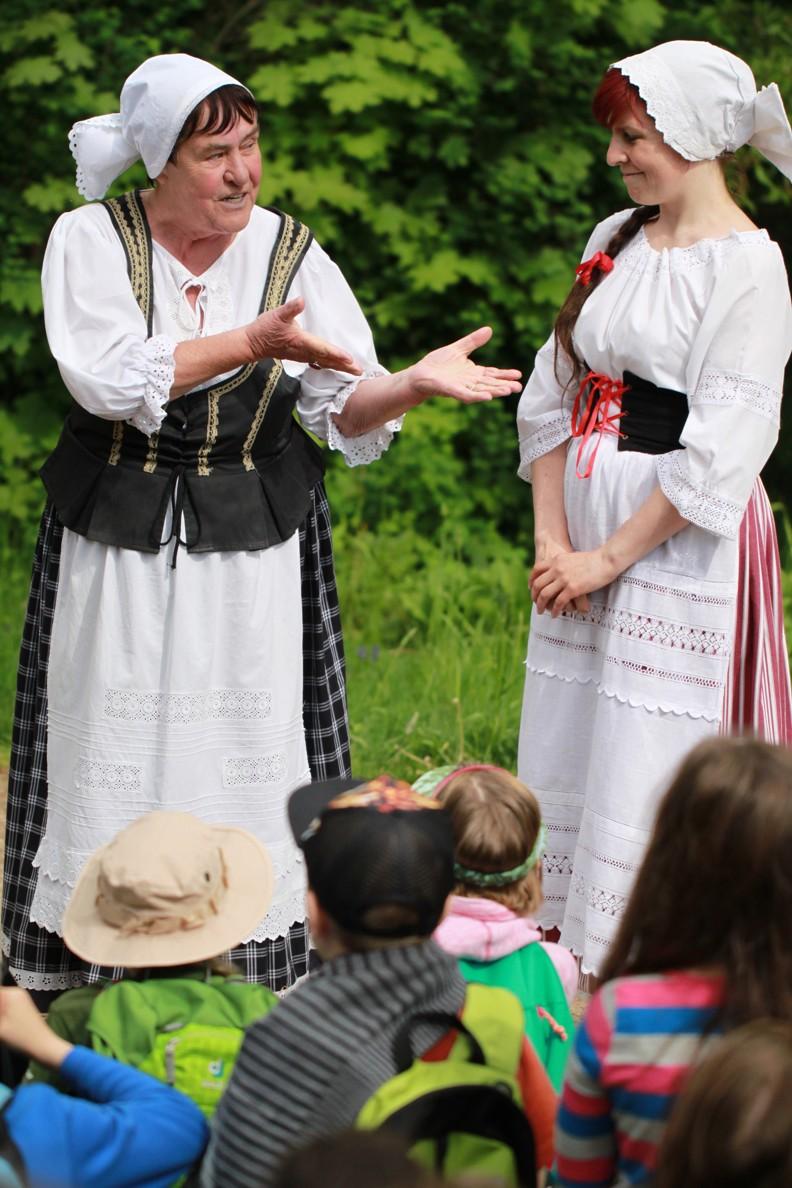 Přežít tedy znamenalo naučit se o sebe postarat bez dnešních moderních vymožeností. A dětem se vše opravdu dařilo. „Placka z mouky je moc dobrá,“ říkala devítiletá Anička Letmajerová ze Sokolova, když u ohniště ochutnávala svůj výrobek. „Je třeba ji ale osolit, jak říkala babička na zámku,“ dodala. Nemyslela tím však slavnou babičku z díla Boženy Němcové, ale jinou postavu z tohoto díla, rozšafnou mlynářku. Děti ji i její dceru Mančinku totiž potkaly na nedalekém zámku Ratibořice, kde se setkaly i s dalšími oživlými postavami z románu Babička. Babička s vnoučaty mezi nimi nebyla, protože „zrovna odjela na pár dnů do Boušína“. Děti ale poznaly kněžnu Zaháňskou a její chráněnkyni Hortenzii, upovídaného krajánka, hajného, kořenářku a další. Dřív než předstoupily před kněžnu, musely se naučit od zámeckého úřadnictva a služebnictva dvorskou etiketu. Kněžnu pak děti co nejuctivěji pozdravily – úklonou či smeknutím.