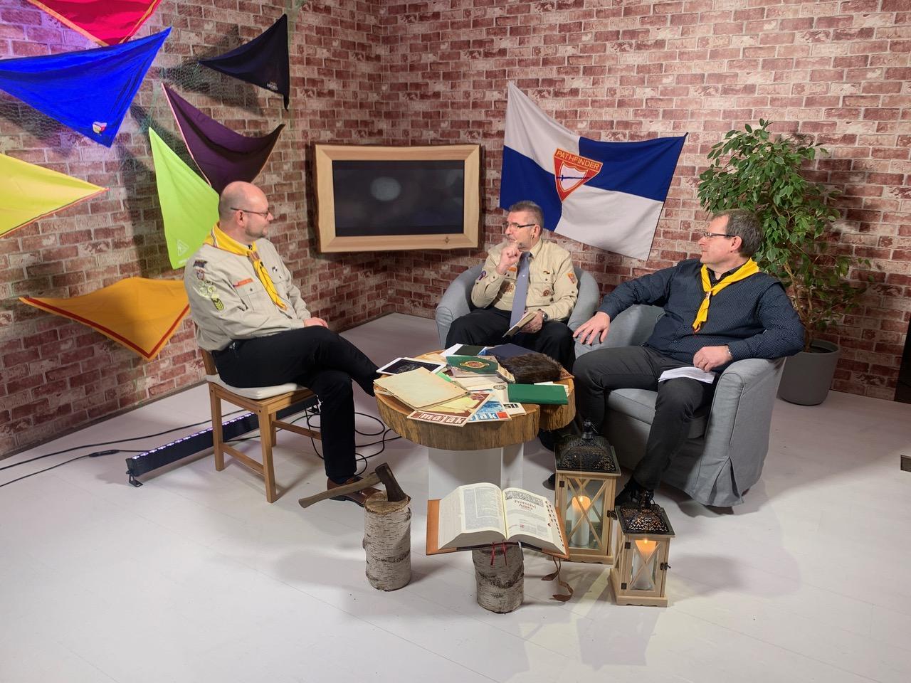 Druhá část online setkání probíhala odpoledne od 15. hodin. Začala moderovaným rozhovorem br. Lukáše Jurečka s br. Jaroslavem Šlosárkem (Jerrym) a br. Danielem Dobešem o historii Pathfinderu. Na tuto odpolední část se účastníci přihlásili na Zoom setkání. V další části proběhly 2 online hry a další 2 přednášky (Psychologie a Přežití v přírodě). Při hrách byla snaha o práci v on-line skupinách, ale pravda je, že nám to technika trochu komplikovala.